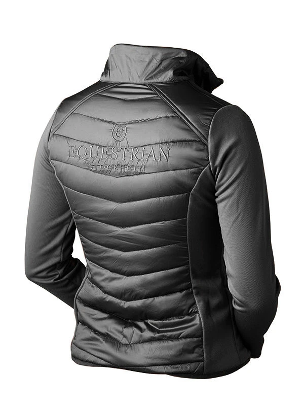 Dark grey multi-functional jacket in a sporty and elegant design with rose gold details. The front and back are made with shiny, durable fabric with a metallic finish. Sleeves and sides are created in stretchy Eco-fleece. Style it with other products from the same collection. Normal in size.