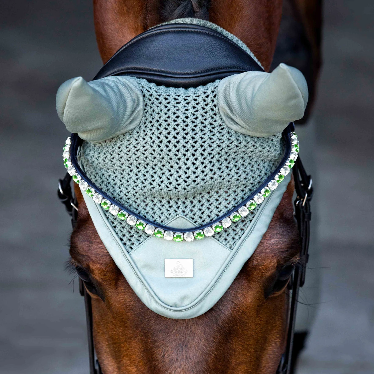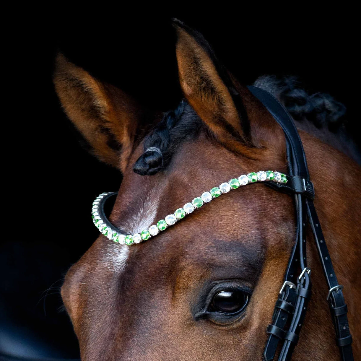 This browband is so beautiful and elegant! It has the most sparkling 10mm Rivoli crystals in a mix of pastel green and crystal.
