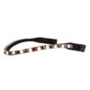Browband with shiny crystals handmade in our exclusive Italian leather. The browband has a stud on the inner side, which enables you to easily change the browband without having to remove it from the horse’s head.