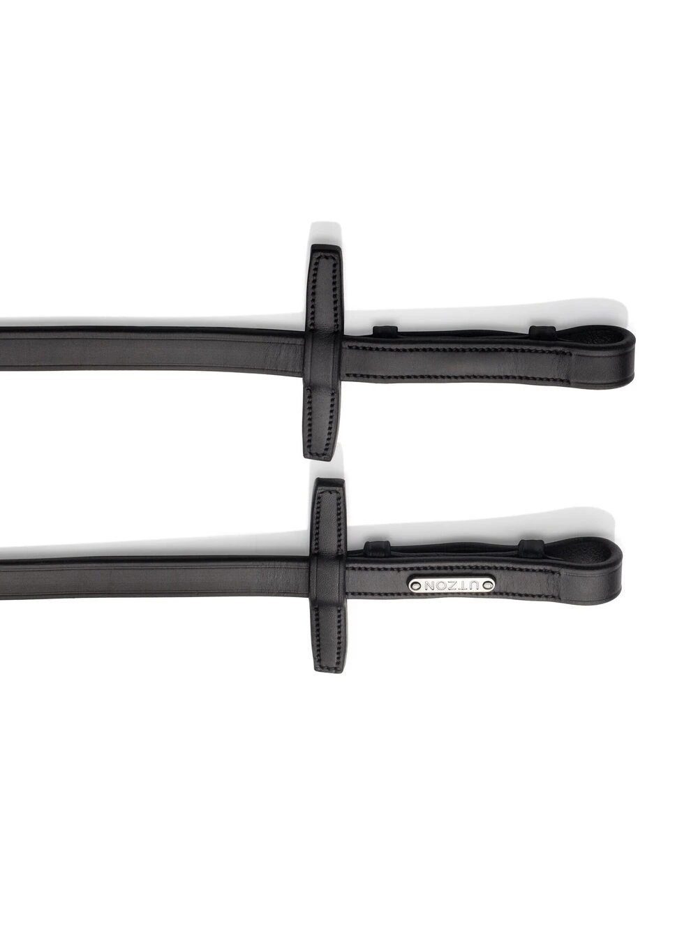 Flat reins with hand stops. The buckles are turned inwards. The reins match our bridle model called London.